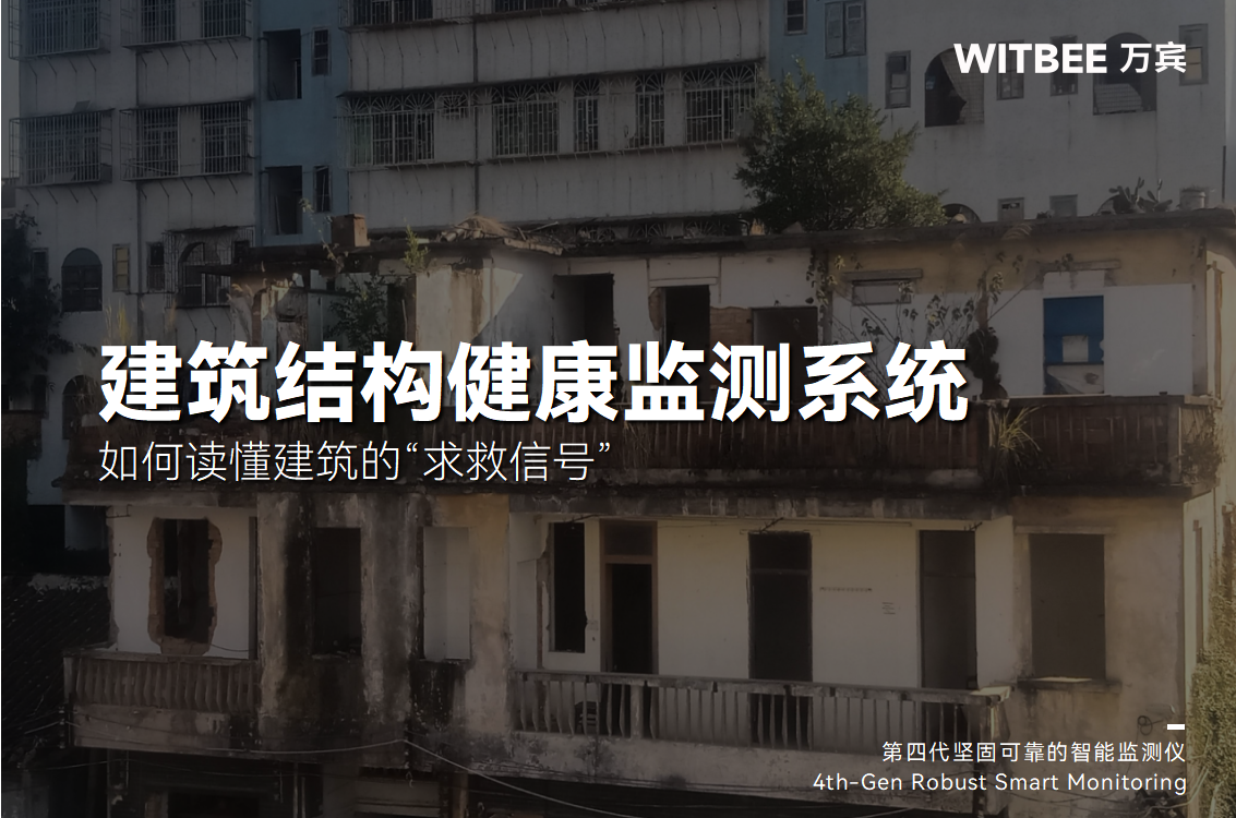 WITBEE?萬賓科技?建筑結構健康監測系統實時采集應力、位移、傾斜等數據,為房屋建立“健康檔案”,實現小病早發現、大病早預警,保障建筑長期安全。